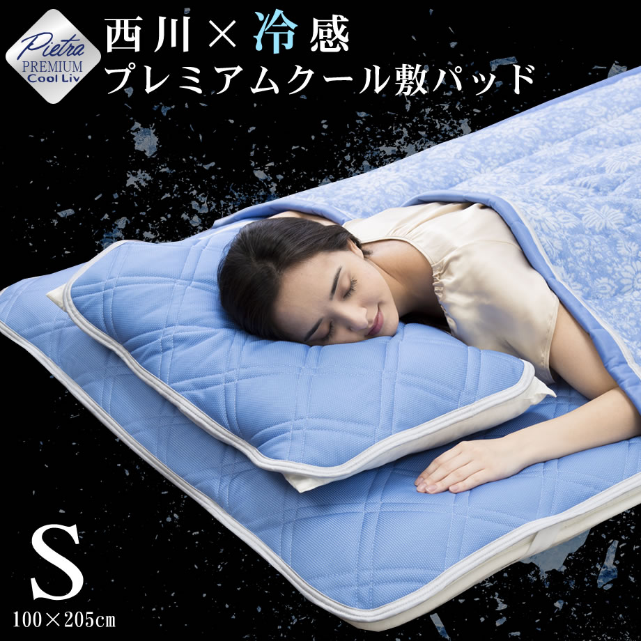 西川 プレミアムクール敷パッド ピエトラ シングル S ブルー ひんやり 接触冷感 夏用 敷パッド クールリブ パッド クール 洗える メッシュ