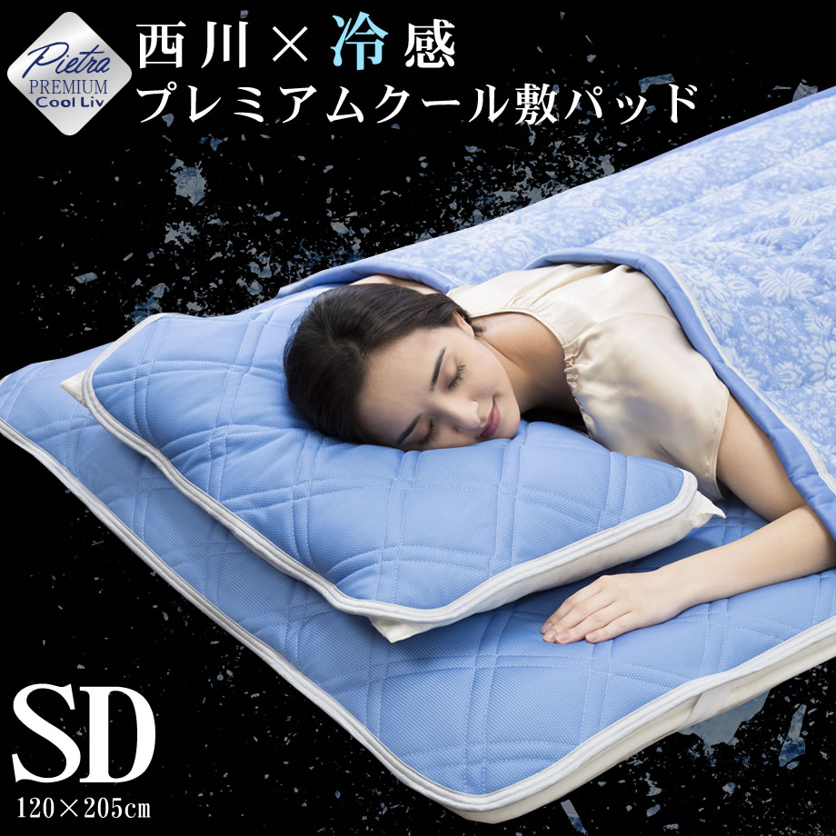 西川 プレミアムクール敷パッド ピエトラ セミダブル SD ブルー ひんやり 接触冷感 夏用 敷パッド クールリブ パッド クール 洗える メッシュ 冷感 冷たい
